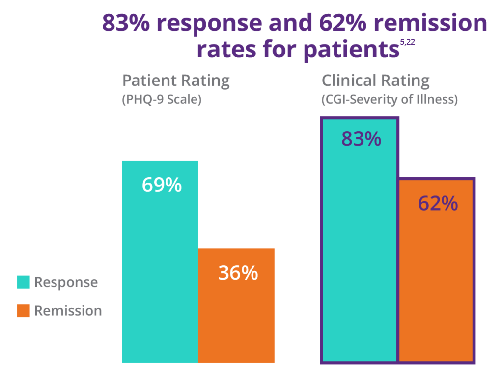 For most, depressive symptoms decrease significantly after 6 weeks of treatment with NeuroStar TMS Therapy, and there is substantial evidence as well as an FDA approval to support these claims.